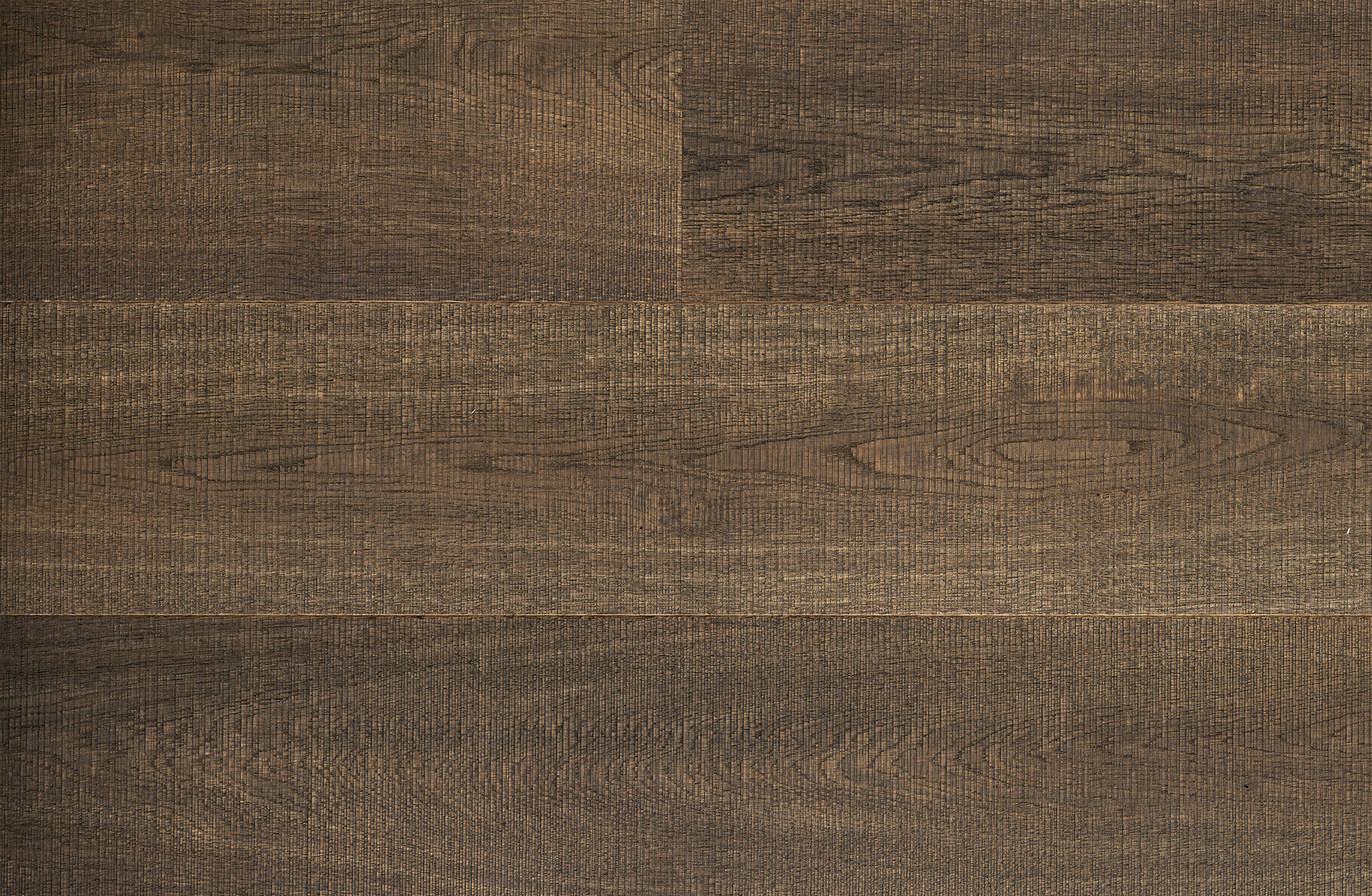 This board has a dark brown tone with black pigment in the grain created by the longer or 'double' fuming process and ebony oil finish.
