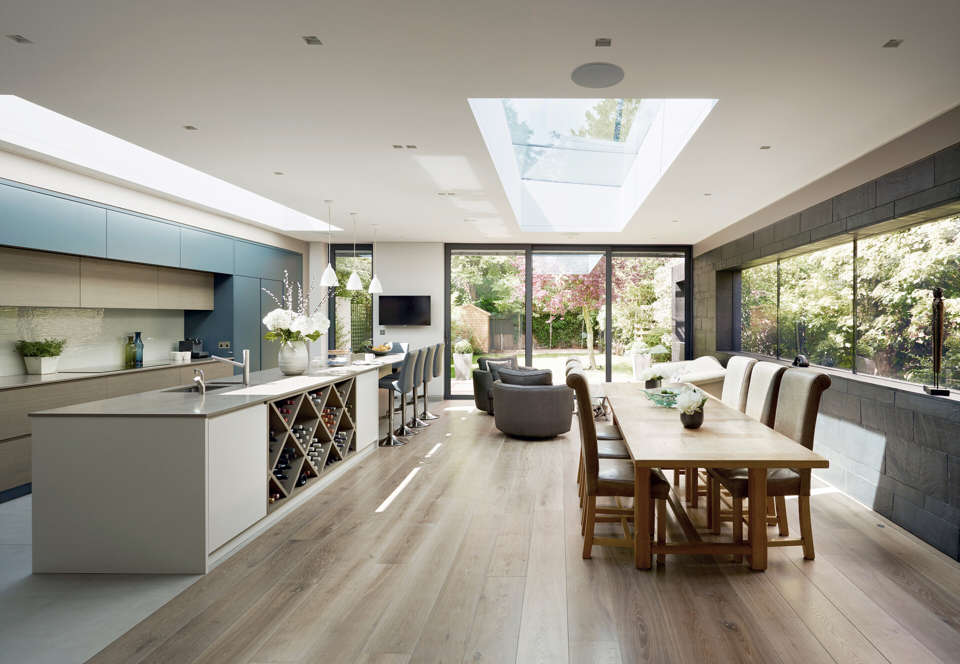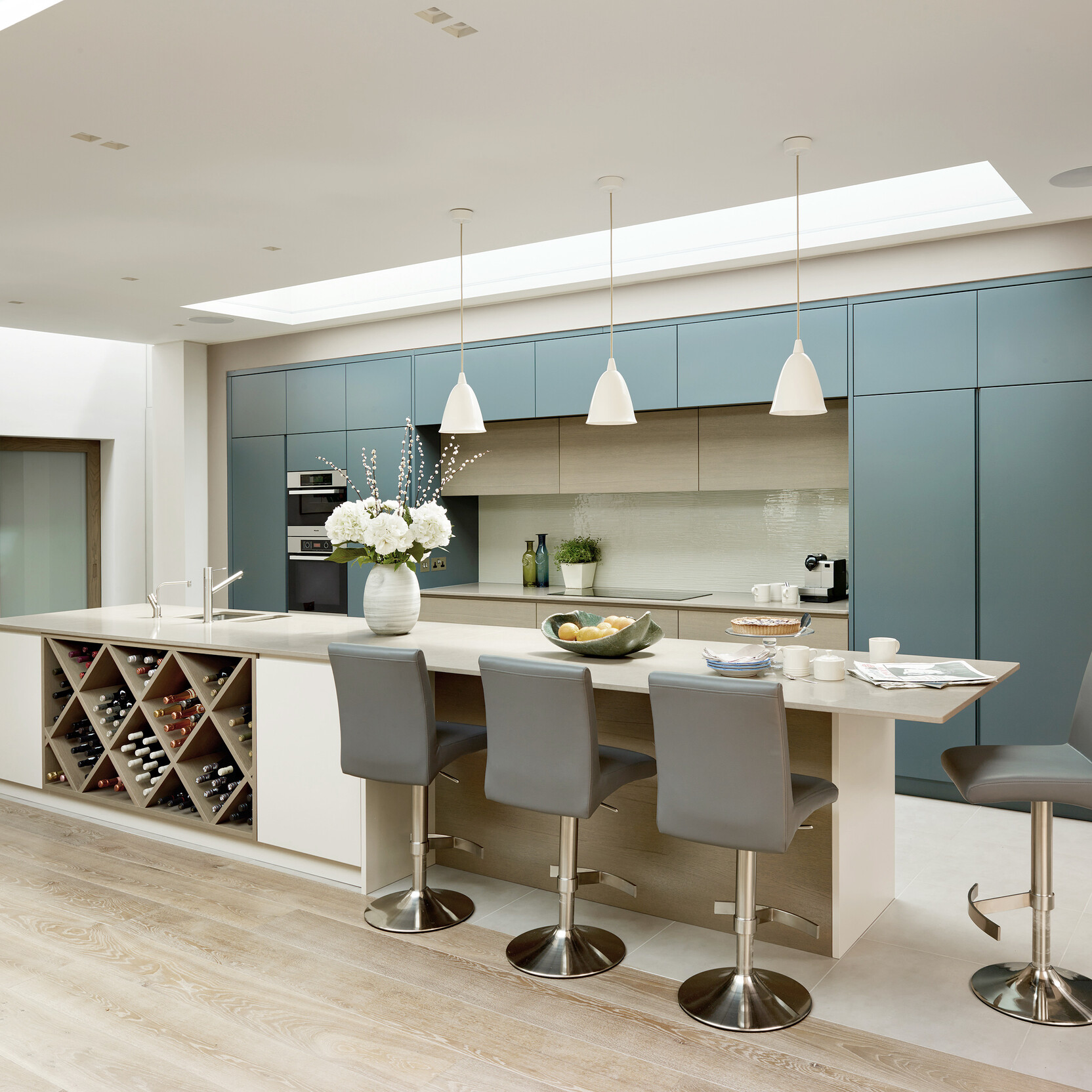 These images illustrate why our Double Fumed Oak White range is so popular. Fuming our standard oak boards for twice as long and infusing the pores with white oil, highlights the natural variation of the grain, while the earthy medium-grey and brown tomes blend in well with almost any wall and furniture colour.
