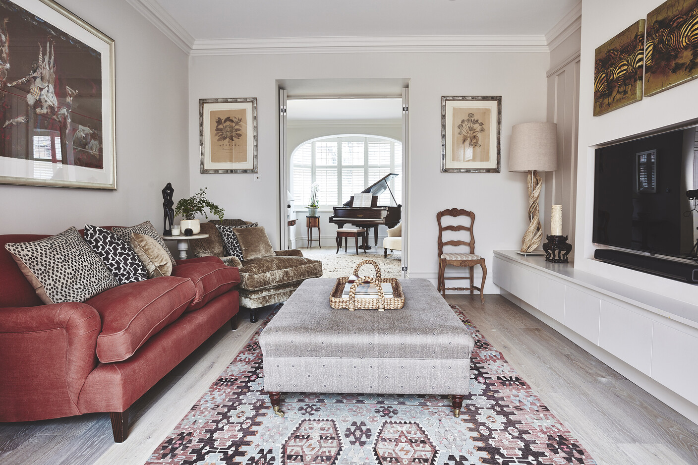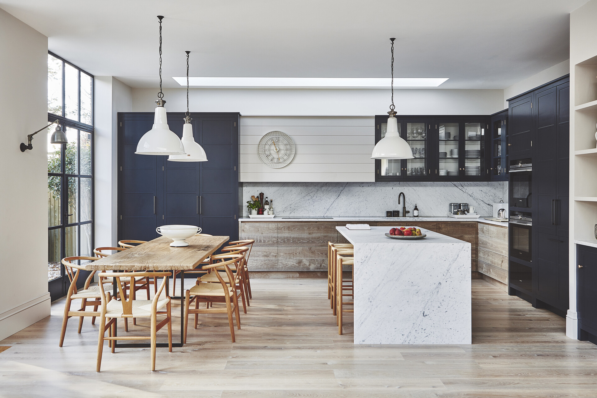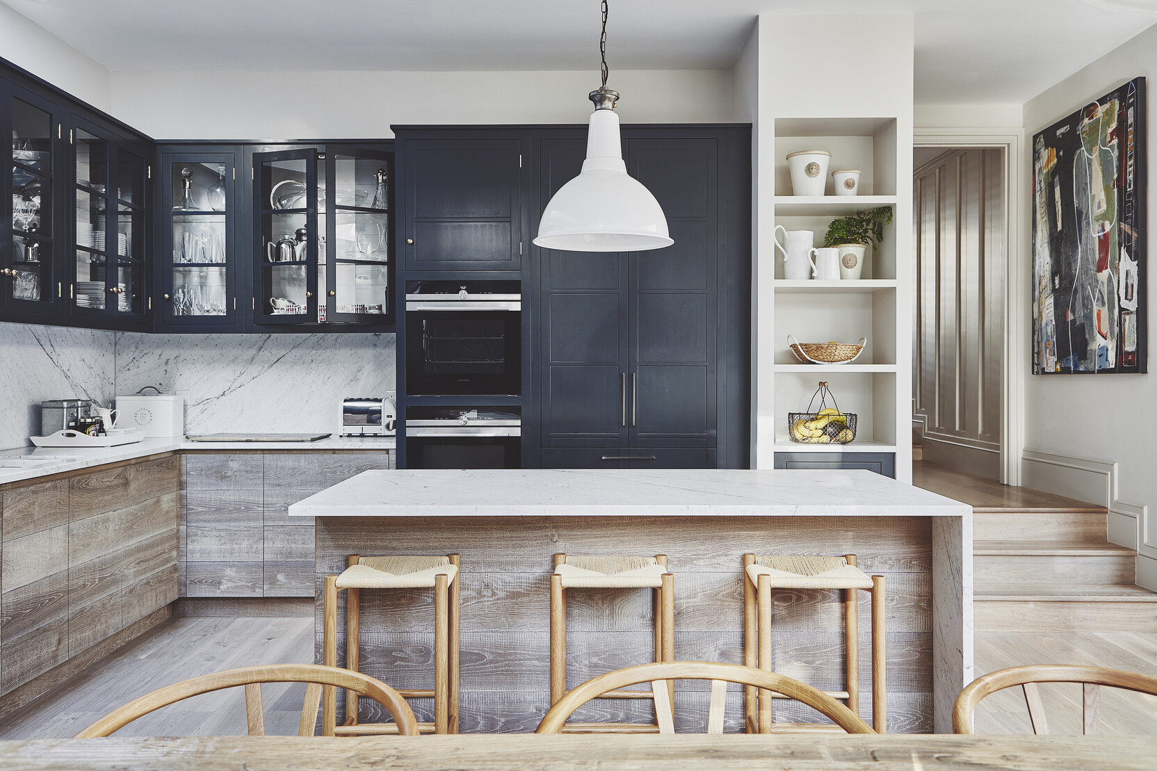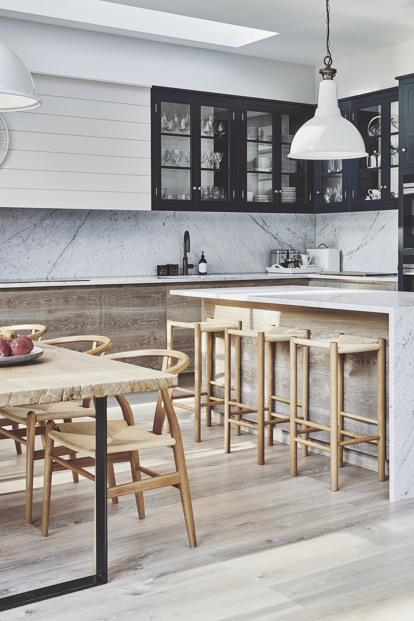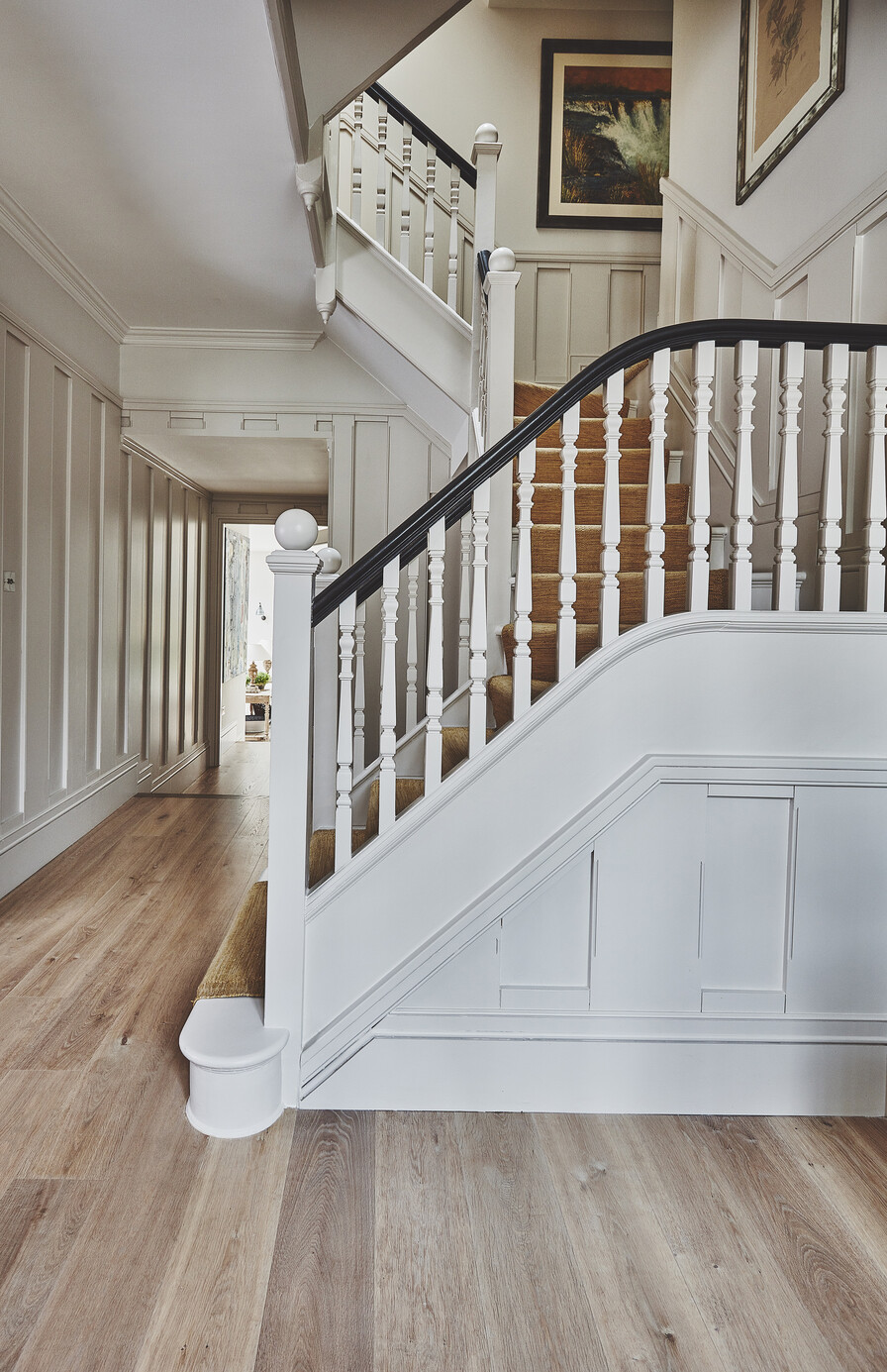 Our tough Oak Kashmir Grey was the perfect choice for the entire ground floor area of this house. The blond tone complements the textured medium kitchen fronts and reflects the natural light beautifully.