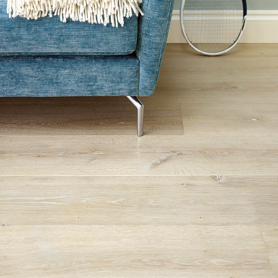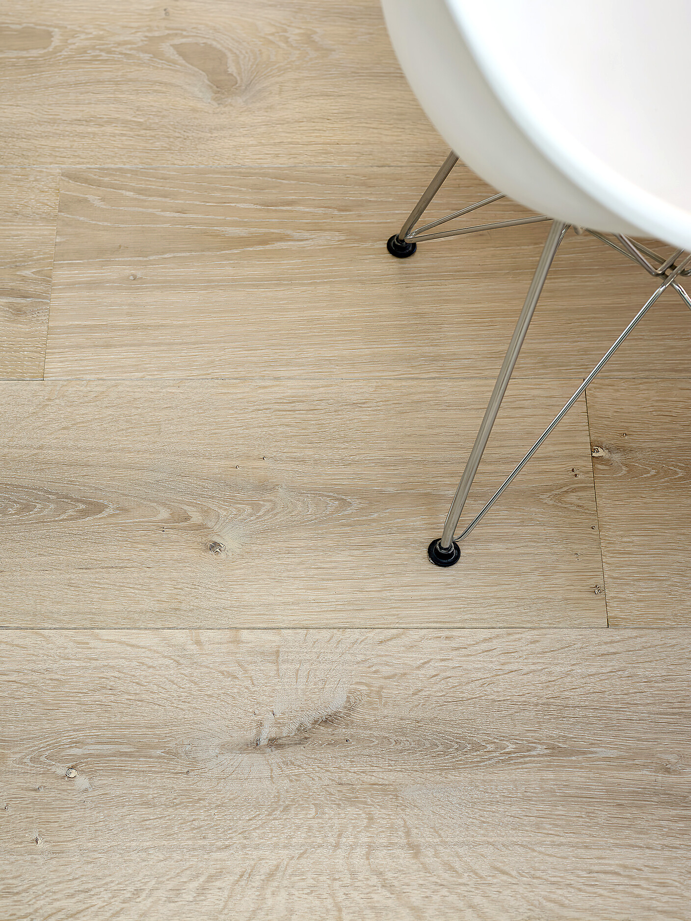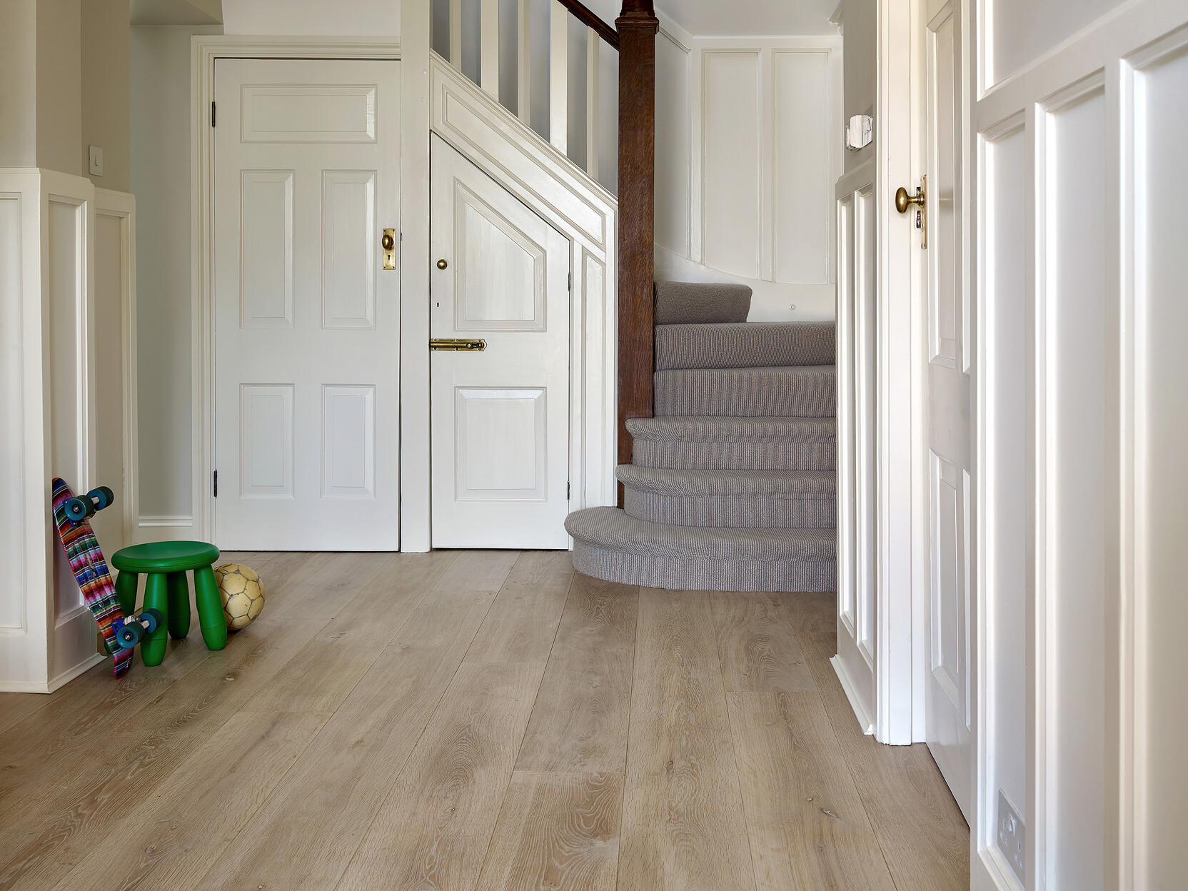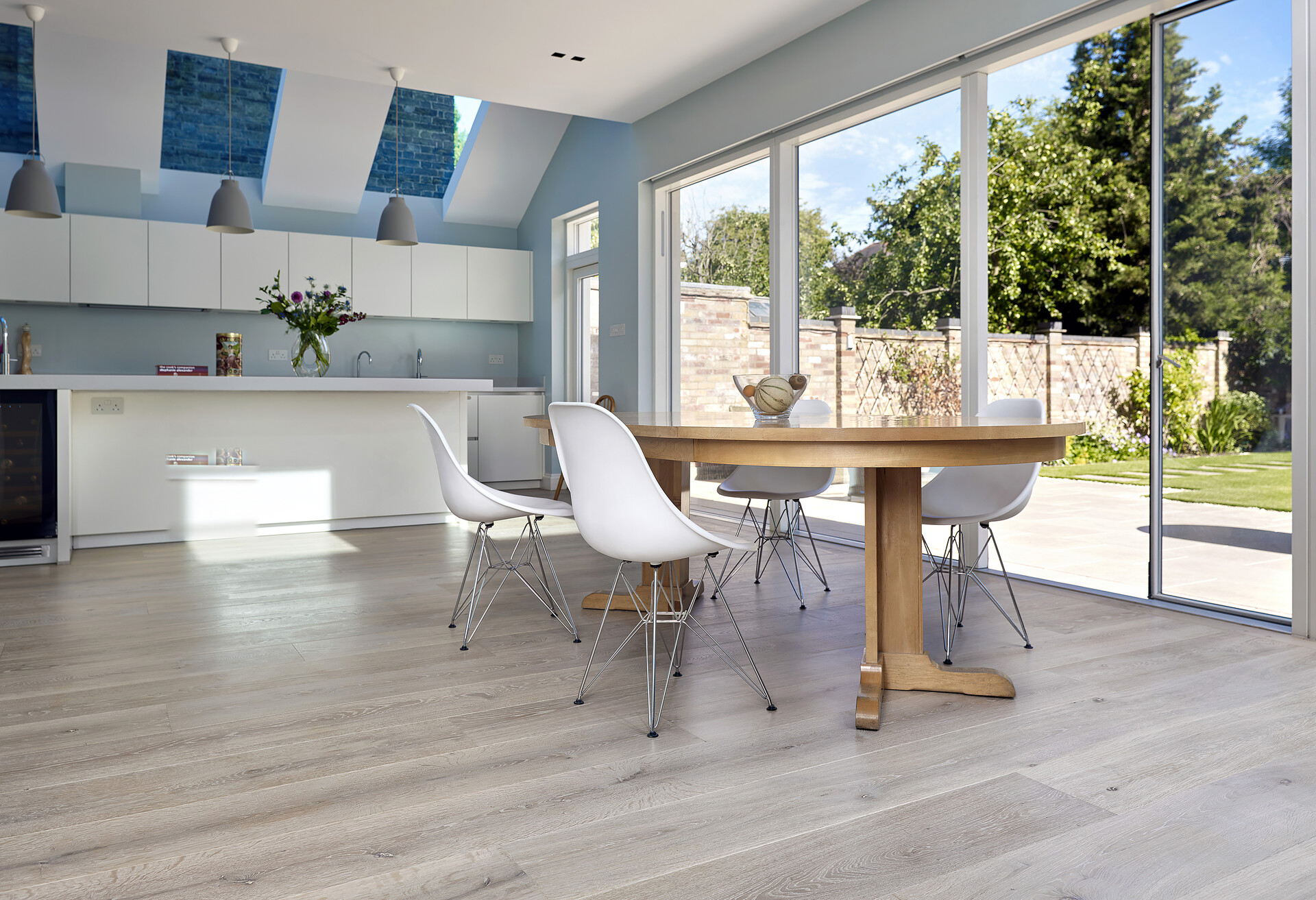 This light-coloured distressed oak floor, which is similar in colour to untreated oak, was installed across the entire ground floor of this large Victorian house, giving each room a warm, contemporary feel and enhancing the large amount of natural light.